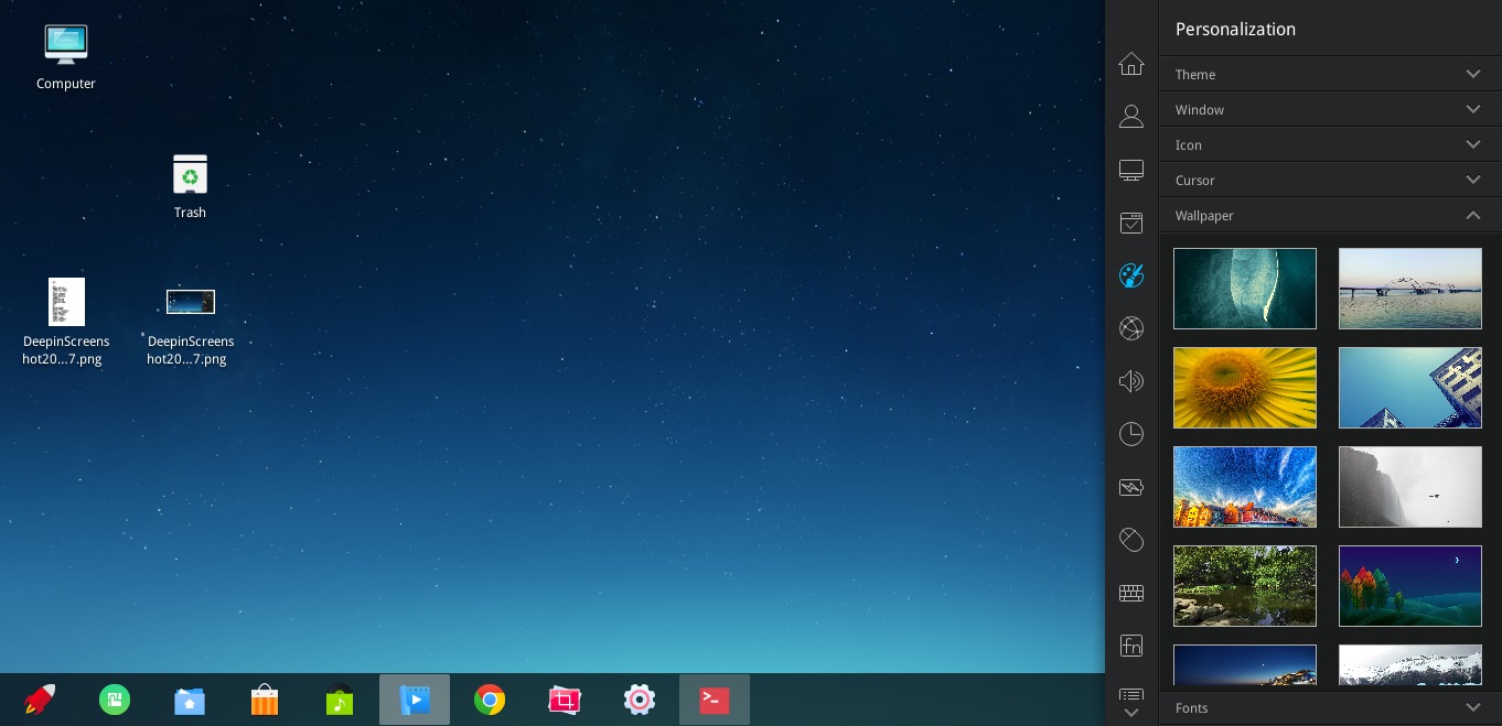 - Desktop-Hintergründe hat Deepin ein paar sehr schöne zur Auswahl.